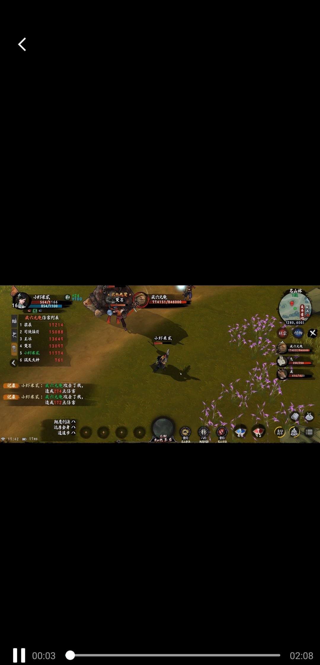 2:接着呆在名山村杀怪,优先推荐练拳,剑。(名山村杀怪经验7+3,名山林杀怪经验10+4,由于玩家数量大于名山林野怪数量,推荐在名山村杀怪。)(地图很大,野怪数量不多)