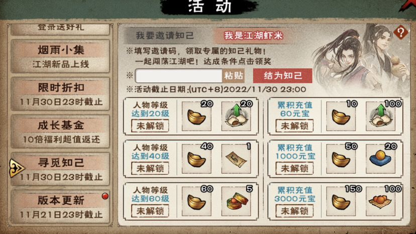 顺便问一下,这个累积充值是我自己的累积充值还是对方的呀?btw我不出意外的话应该就是个月卡基金党……暂无额外氪金打算(忍住!)……不嫌我穷的虾米来!一起仗剑/刀/拳/枪江湖!