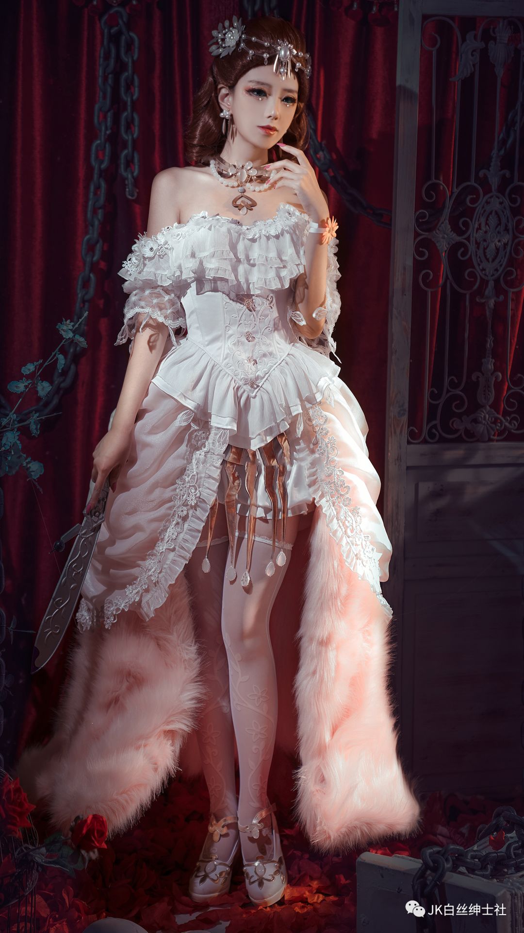 cos:第五人格红夫人cos正片@橘子改名中,渐变粉礼服
