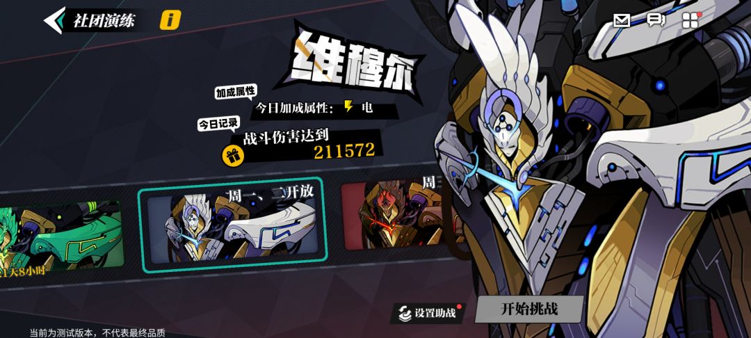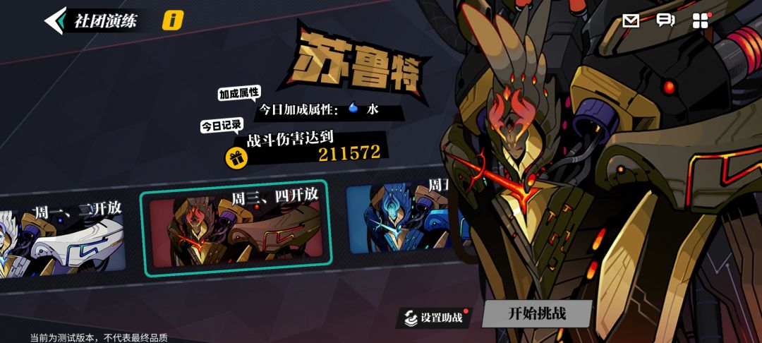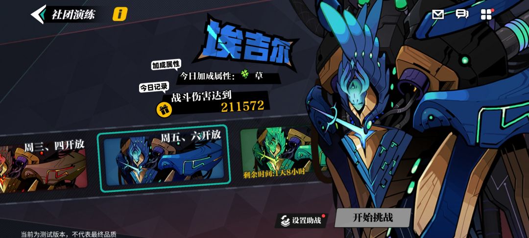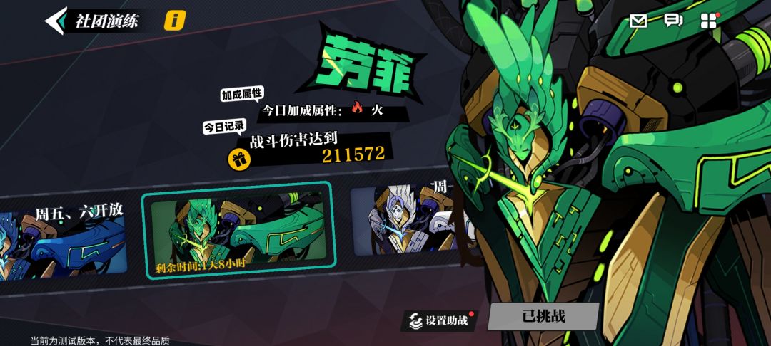 【社团演练】作为社团玩法的日常副本,每周不同的时间段会有不同的BOSS开放挑战。