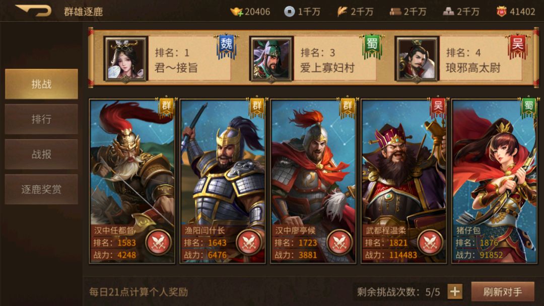 魏国主血控防御,蜀国主杀强输出,大吴主装适时出,“牺牲”、“先登”和“熟虑”映射在江山2的土地上,谁敢横刀立马,唯有,《朕的江山2》!