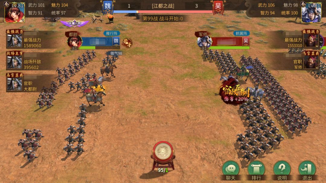 武道大会、群雄逐鹿等PVP玩法,通过良性竞争,横刀立马,彰显王者霸气,国家殊荣,皆系于您的身上,同时您也可以在沙盘演武的PVE玩法中,过五关斩六将,赢取丰厚奖励