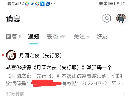 <1>打开通知中心,看到月圆之夜(先行服)给你发了个激活码。