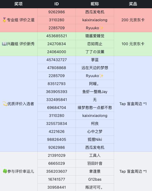 评价活动是TapTap官方举办的社区活动,旨在征集高质量的评价内容,与厂商无关。