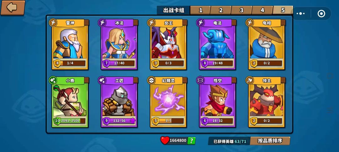 卡组搭配:电法,龟相,雷神,女王,冰法,悟空,小鹿,工匠,幻精灵,领主