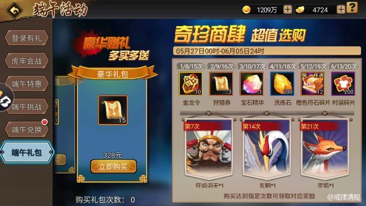 奇珍商肆是为人民币玩家专设的快速购买养成材料的通道,一般出现在大型节日活动现场。遵循惯例,赵小帅极大概率会在下一个奇珍商肆中闪亮登场,以特定的获取方式与各位粉丝见面。这种获取手段直截了当,金力铸就一切,玩家只需购买礼包的数量达到第21次,那么即可额外获得极品战宠赵小帅的直接奖励。相比狩猎场概率性获取,以数量碰运气搏概率,这样的获取方式简单粗暴,只需要满足购买礼包的次数条件,即时拥有,这也是金力玩家解决问题的专属方式。