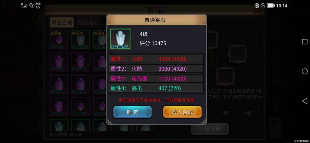 目前最让人刺激和欣喜的物件也有祭石,合成随机性,熔炼8取4同样是随机,往往这种概率**件最容易激发玩家内心的“**心理”,总认为下一个祭石一定会熔炼出极品,往往事与愿违!这和我们狩猎前的幻想是一样一样的。在社区逛的时候看到“無雙诸葛亮”道友总结的祭石经验分享,书童早已说过,祭石合成和祭石熔炼大家会看到符石、战旗和战宠打造的一些影子,而且打造的难度更甚,确实是异常敏感的一个点,书童不妨沿着“無雙诸葛亮”道友的思路,和大家浅谈下天书子系统--祭石。