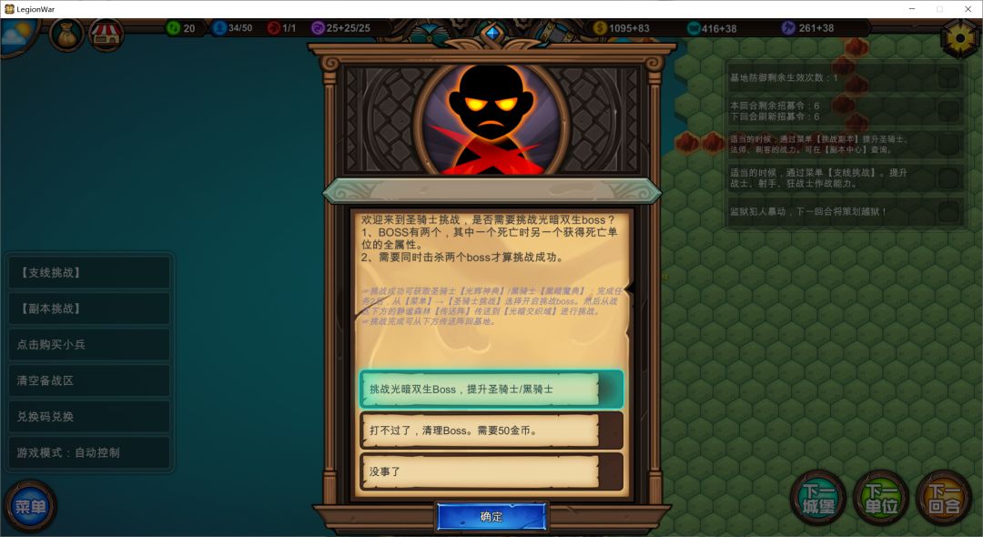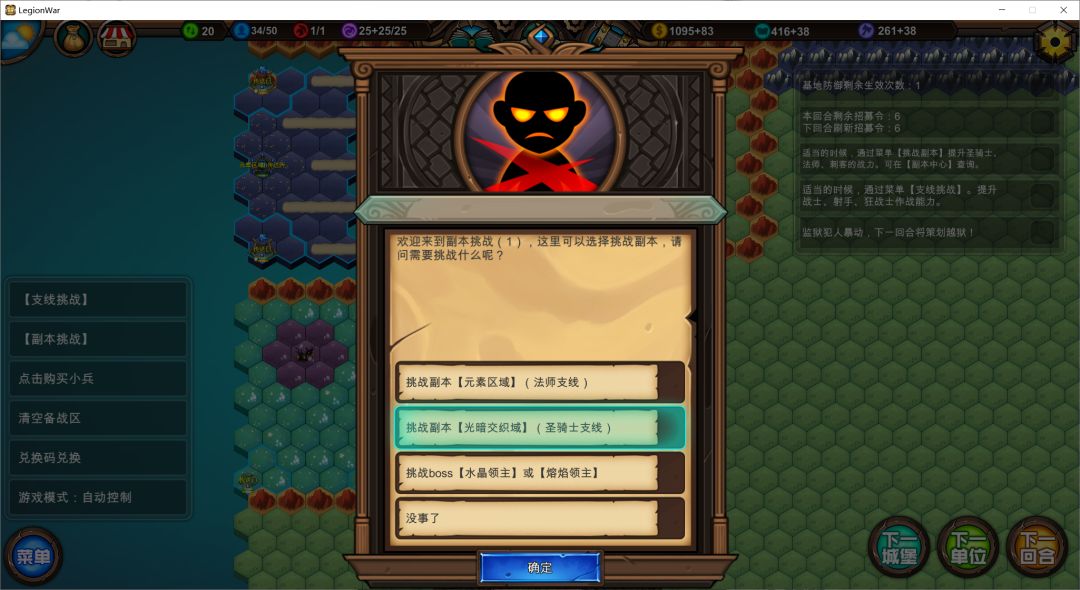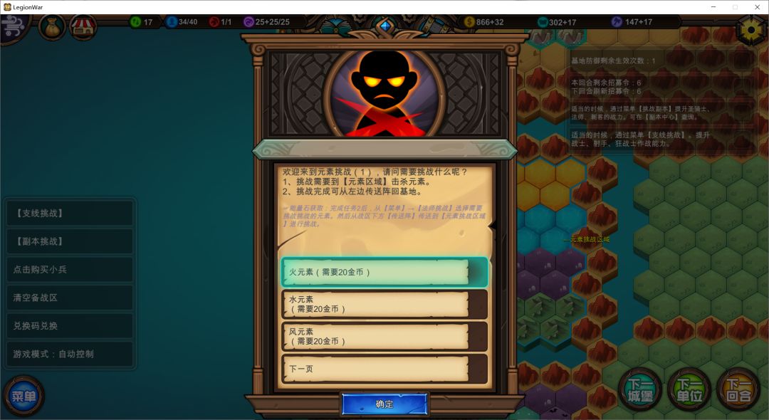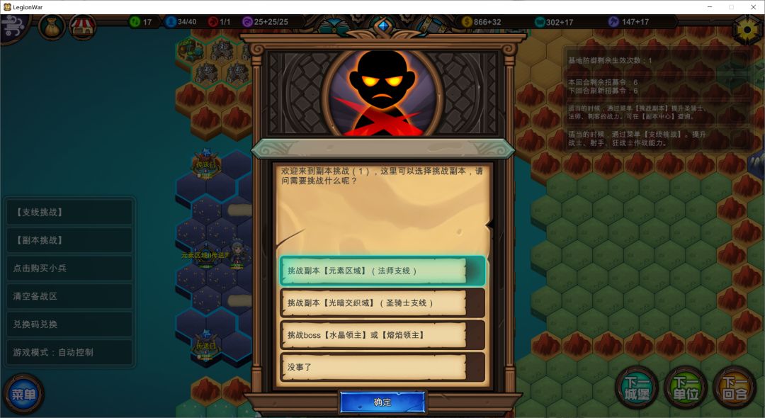 点击菜单【副本挑战】生成挑战怪:X元素
