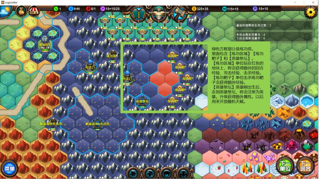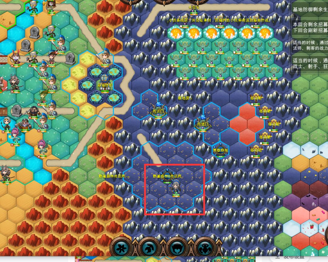 【练功区域】单位站在红色的地块上,将会获得额外的回合经验、攻击经验、击杀经验。