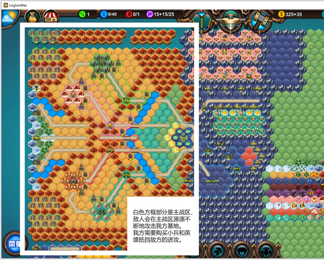 主战区:白色方框部分是主战区,敌人会在主战区源源不断地攻击我方基地。