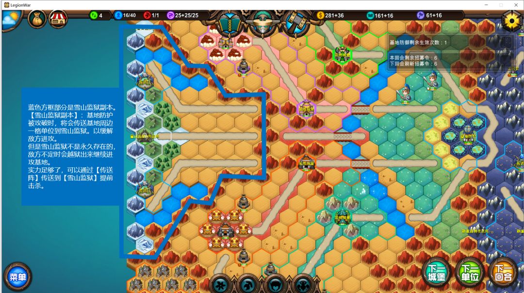 【雪山监狱副本】:基地防护被攻破时,将会传送基地周边一格单位到雪山监狱。以缓解敌方进攻。