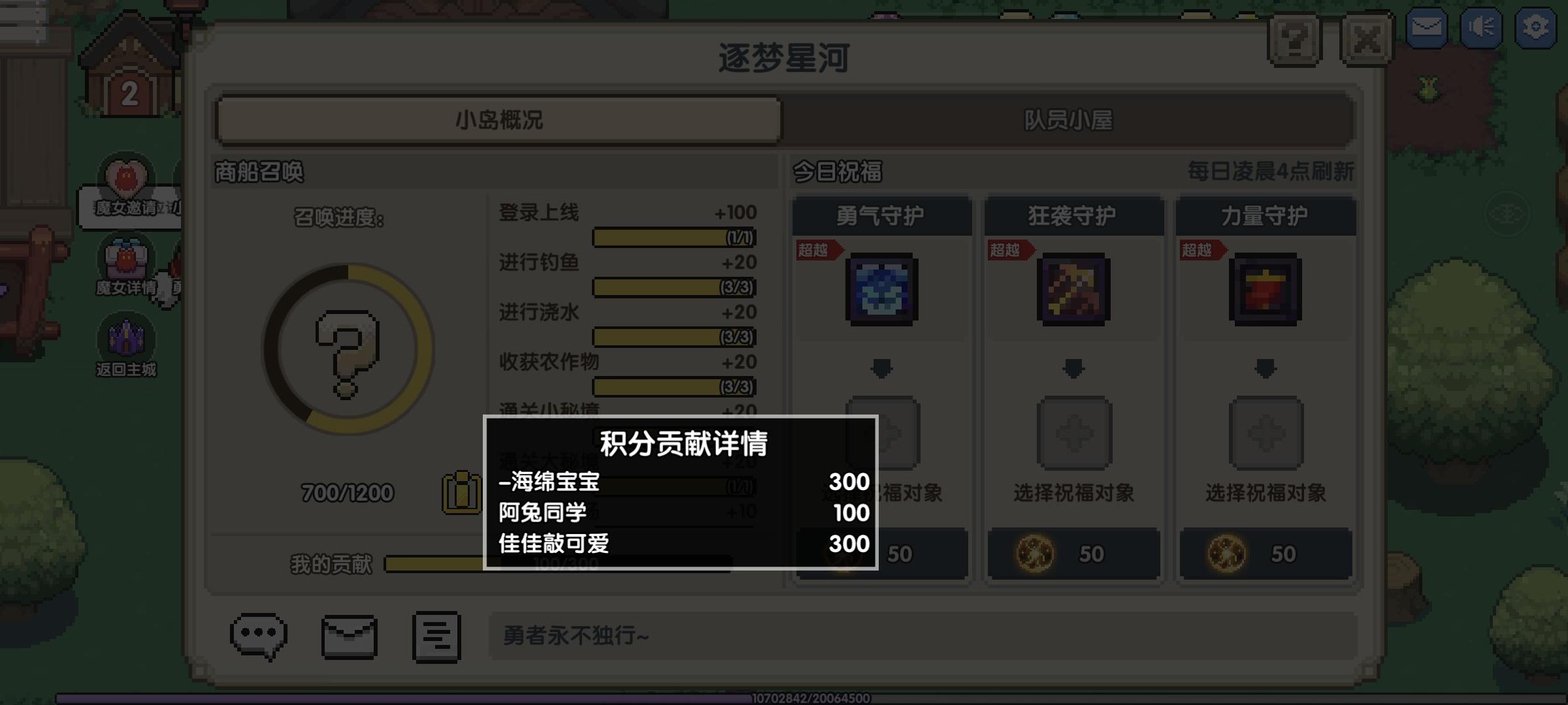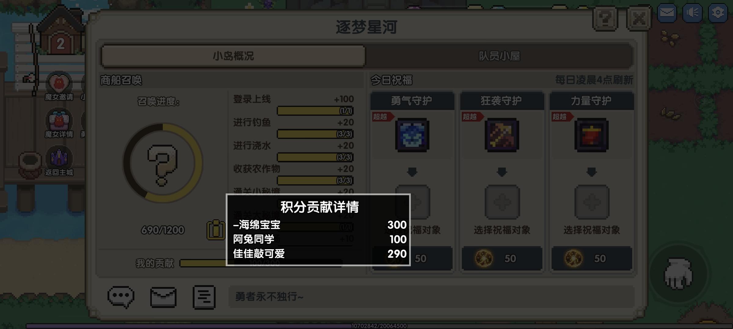 勇者小队任务差异界之门和世界boss做满,但为什么贡献一直都是100?