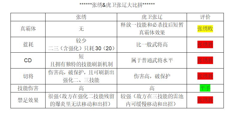 我们从上表中张绣和虎卫张辽各项指标的battle里可以看出,张绣在这个较量中已经全方位胜出,在当下PVP赛场的切将位,张绣完全可以取代虎卫张辽,坐上切将的C位!