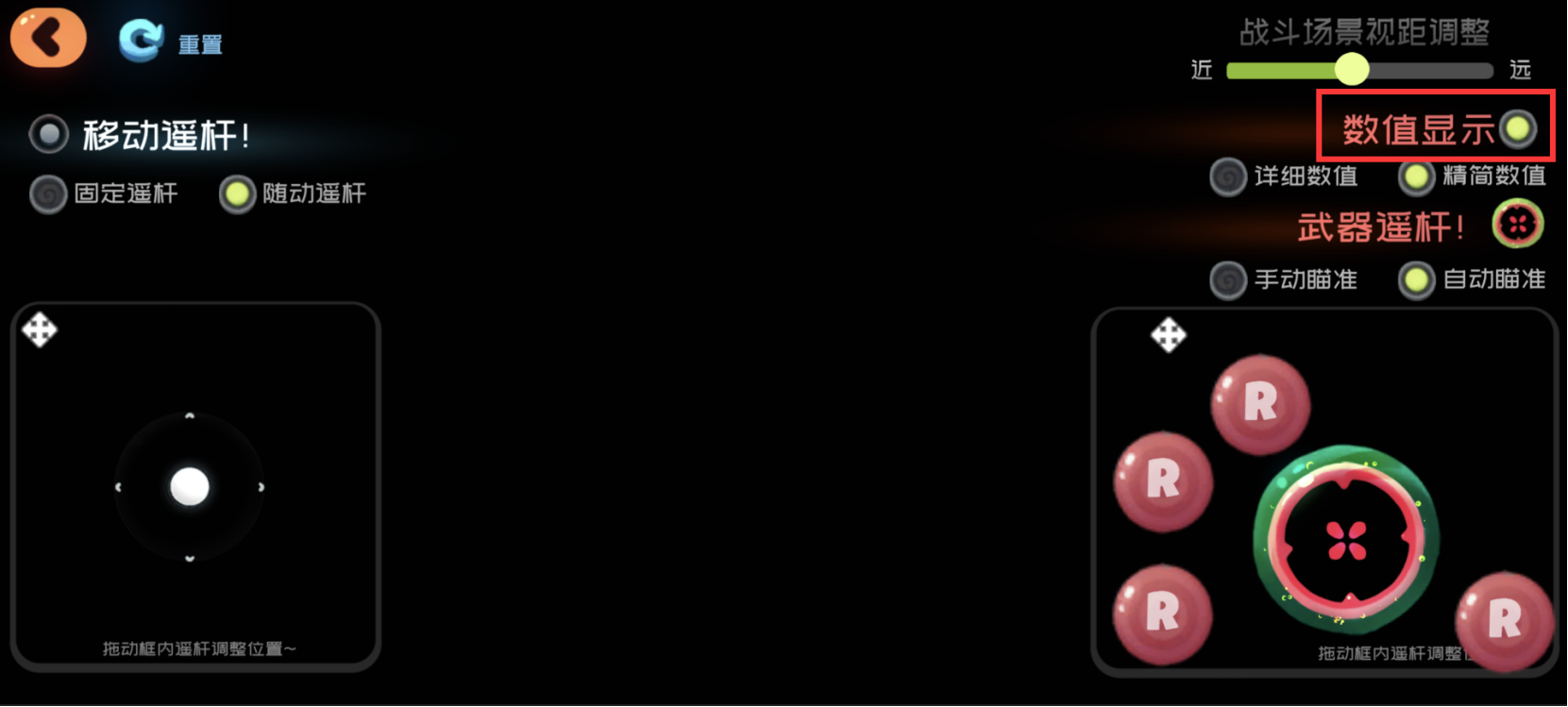 版本更新后,玩家可以再遥杆与视距中选择开启或者关闭数值显示