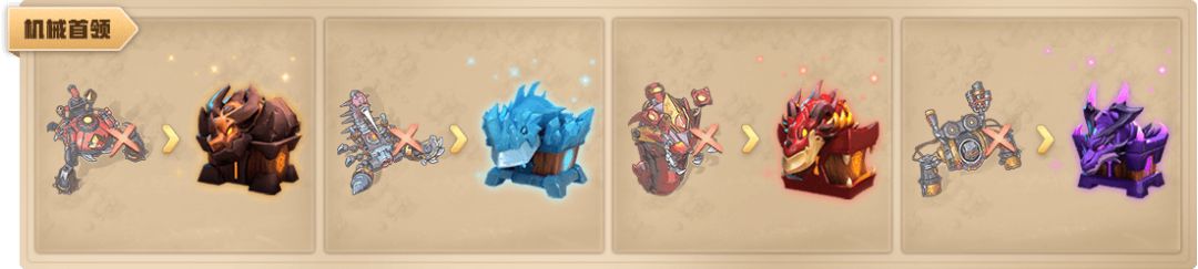 为了给人类军队造成毁灭性打击,矮人研发了一批以蒸汽驱动的巨型机械,他们比人类高大几十倍,在战场上肆意妄为。你可以派遣手下的单支队伍或多支队伍进攻机械首领才能将其击败。当然战利品也十分可观,是珍贵的巨龙宝箱,开启后就能获得龙晶!