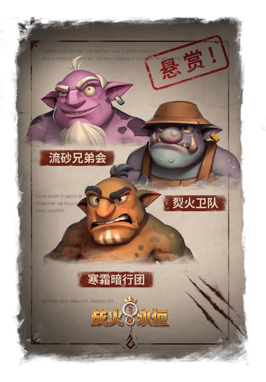 流砂兄弟会:一支小型矮人团体,长期在人类城堡间流窜攻击。单兵战斗力尚可,常携带着不少有用的资源。5级及以上的流砂兄弟会有概率掉落精英流砂兄弟会情报。