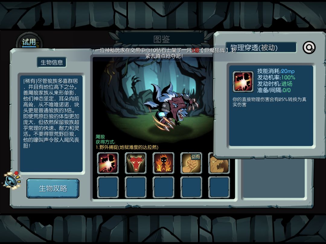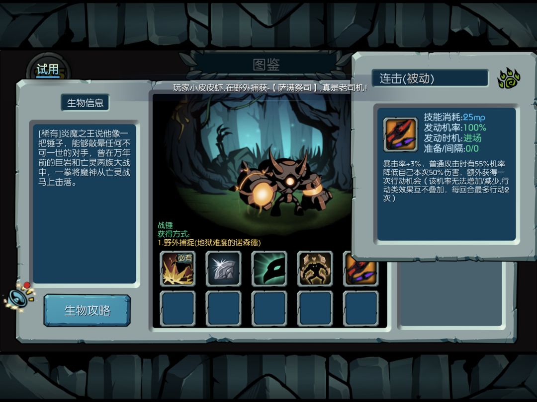 同熟练度带皮肤可秒杀兽主。