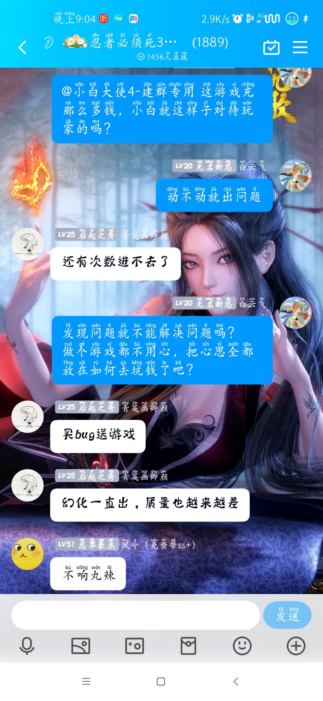 小白怎么回事,这一天天的,怎么就问题那么多,动不动就出毛病,这游戏还怎么玩?一更新就有问题,出来问题也不解决一下,你们把坑钱的心思放在做游戏上面。这游戏哪来那么多bug。