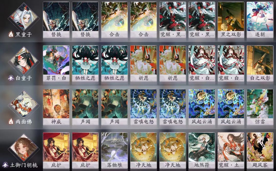 1、胡桃庇佑给白童子,二勾一时,白童子觉醒/祈愿+牺牲之愿,黑童子替换上去,接下来配合胡桃净天地不断压场。这也是我廉价版本满觉醒的想法。
