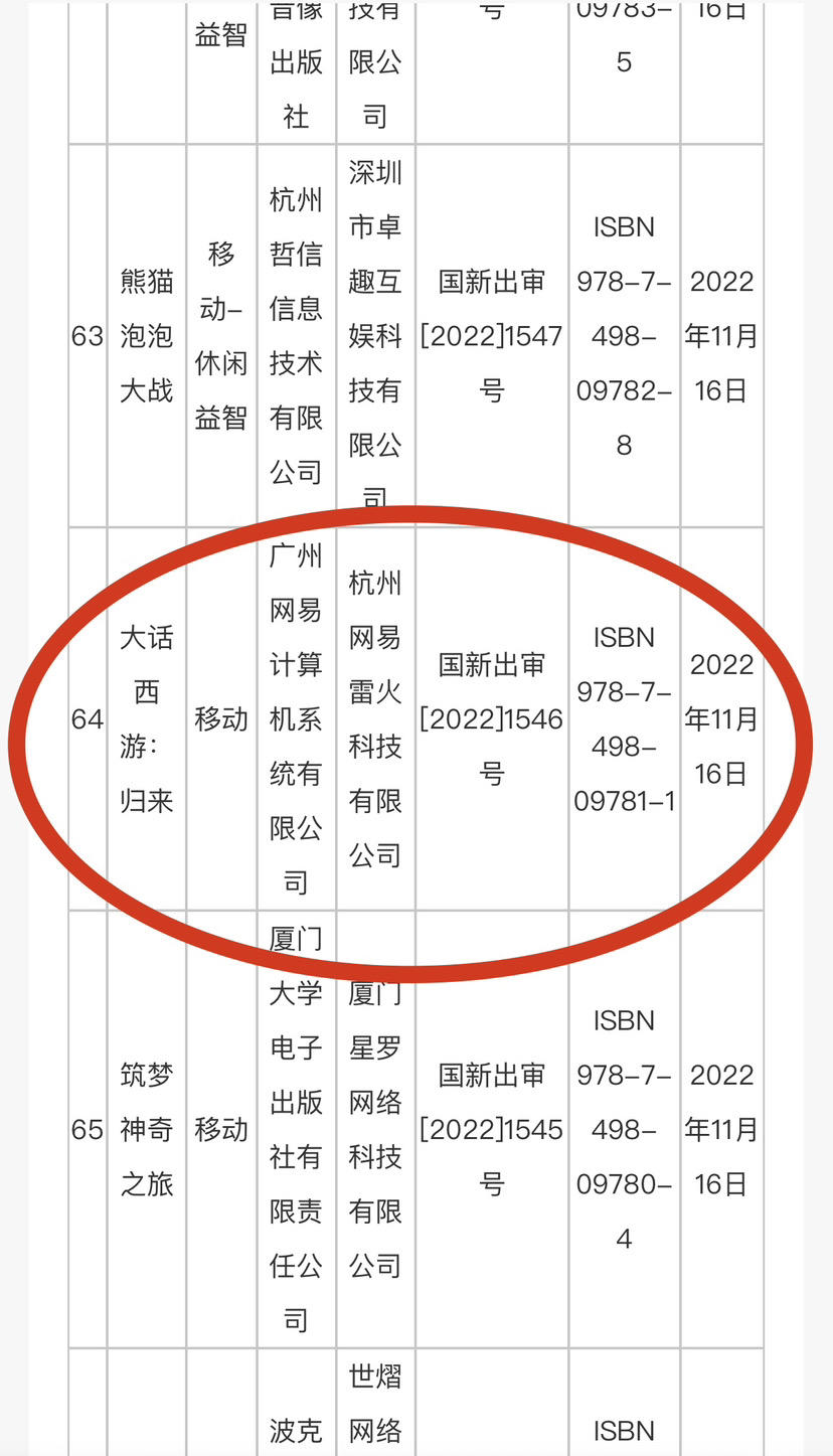 网易太让我失望了,给你机会你也不中用呀,害得我这么激动一个一个看,九月我就很失望,这么久了每天起床都会看一眼版号,这次又过了个大话西游??吐了,不行就流星蝴蝶剑手游吧,估计12月了,兄弟们,不行等鹅厂吧,