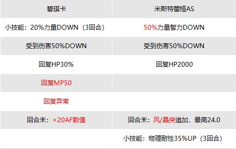 一套AF下来,两个角色能提供的极限增伤手段,在无反击BOSS的环境中,辅助物理输出角碧琪卡的增伤能力稍胜一筹;碧琪卡还提供了破碎以供下回合输出手收割用;