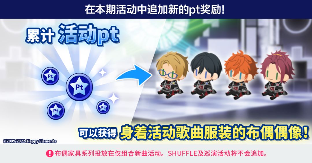 在活动中收集pt可获得身着活动歌曲服装的布偶偶像!
