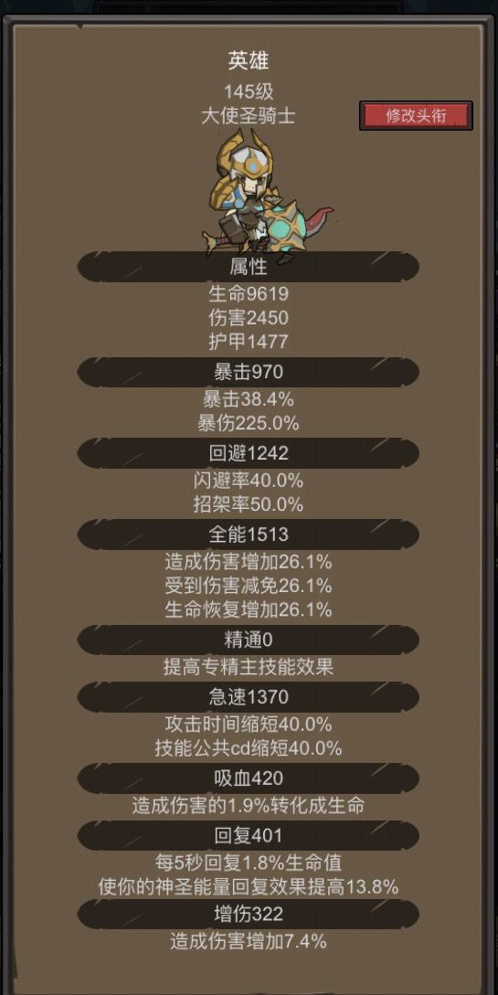 圣骑士要求堆全能闪避,然后拉满暴击极速。(全能无上限,其它都是1160满)剩下的可以给一两条吸血回复。