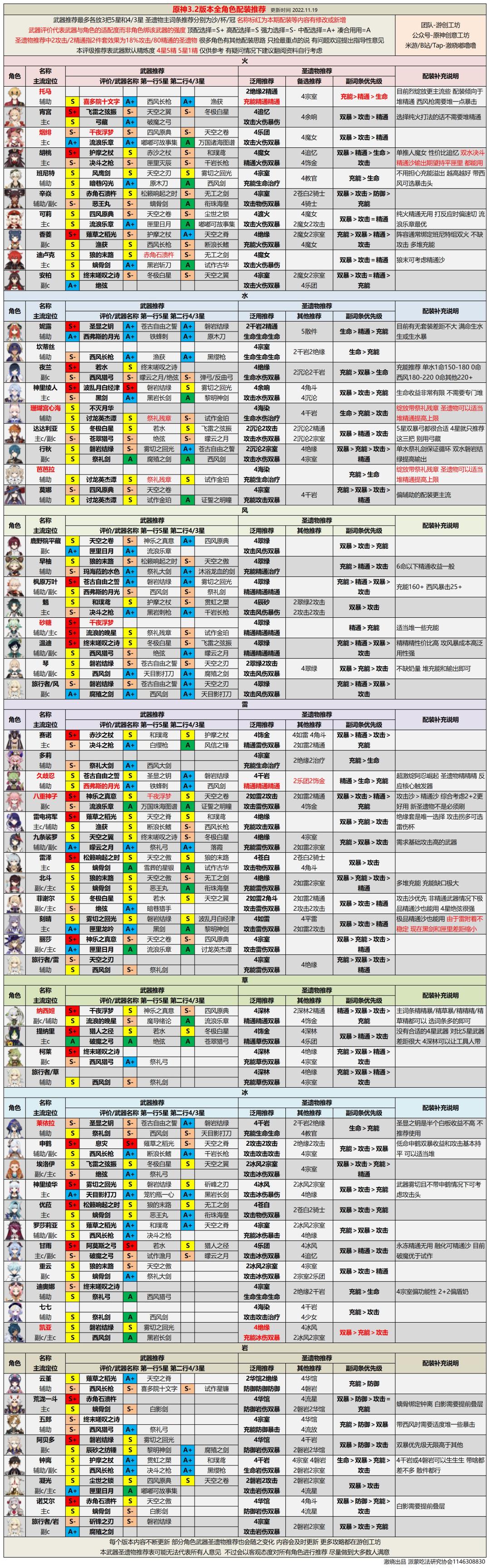 咕掉纳西妲当期的攻略内容不是本意,但依旧深感抱歉,因此本期也会以诚意满满的内容回报大家,为大家带来当前版本最贴合版本情况的3.2版本全角色评级配装分析。