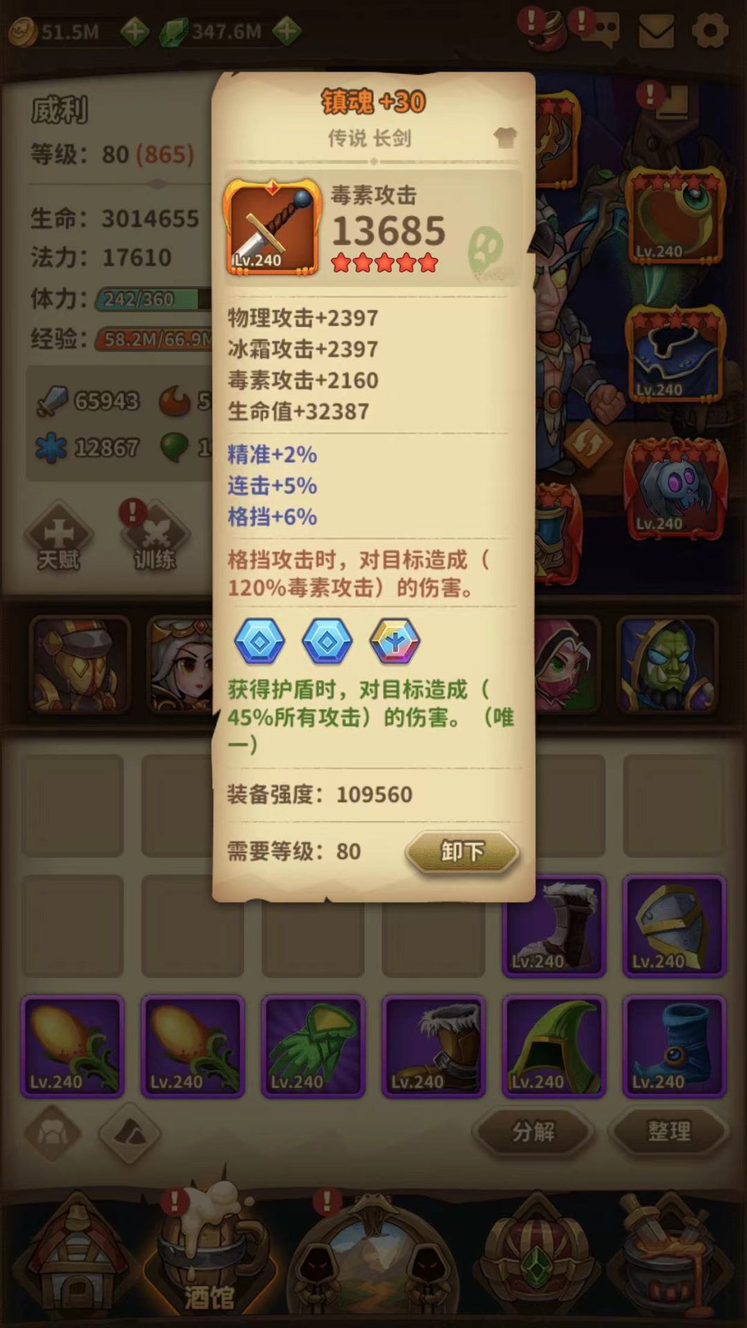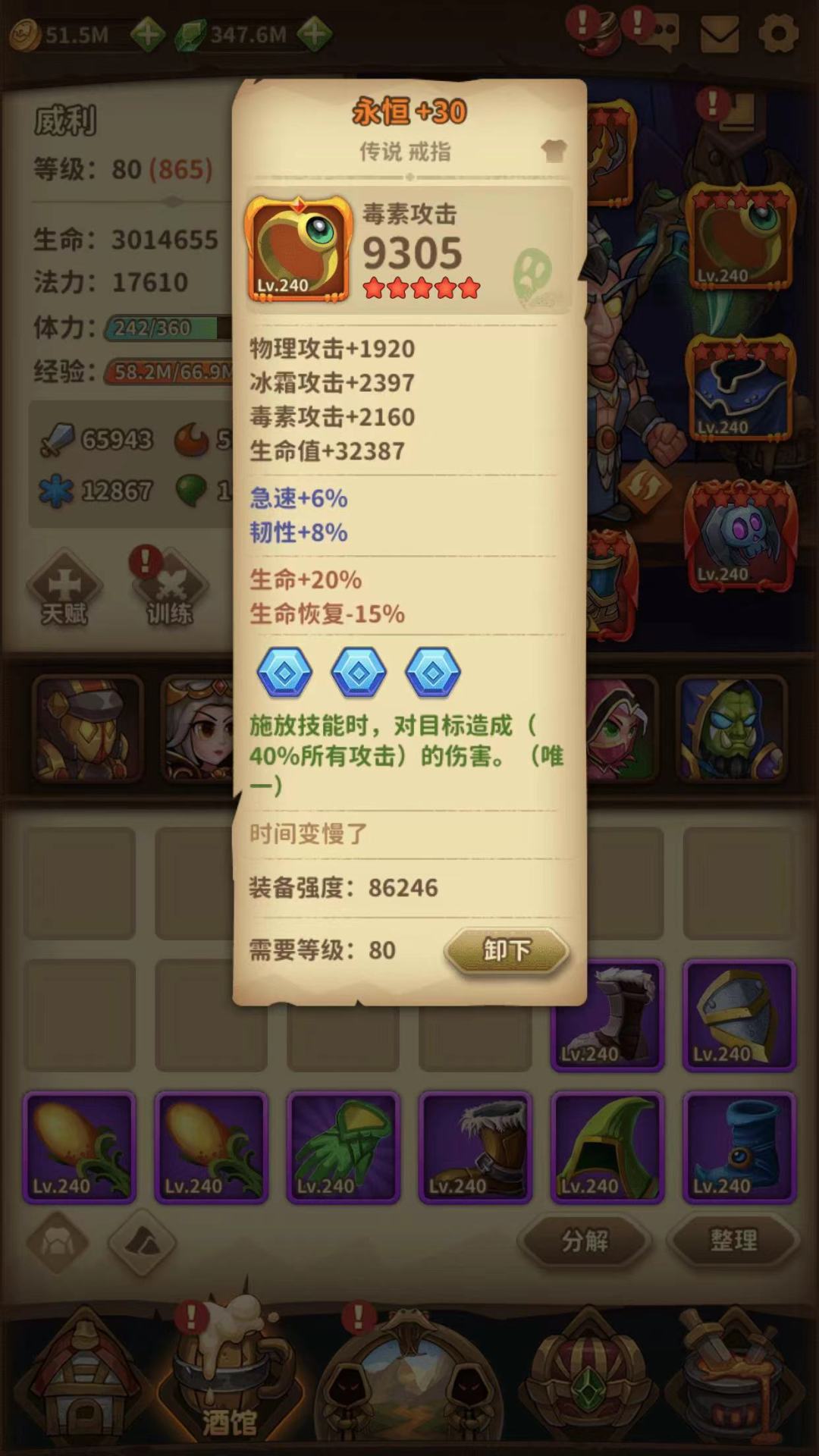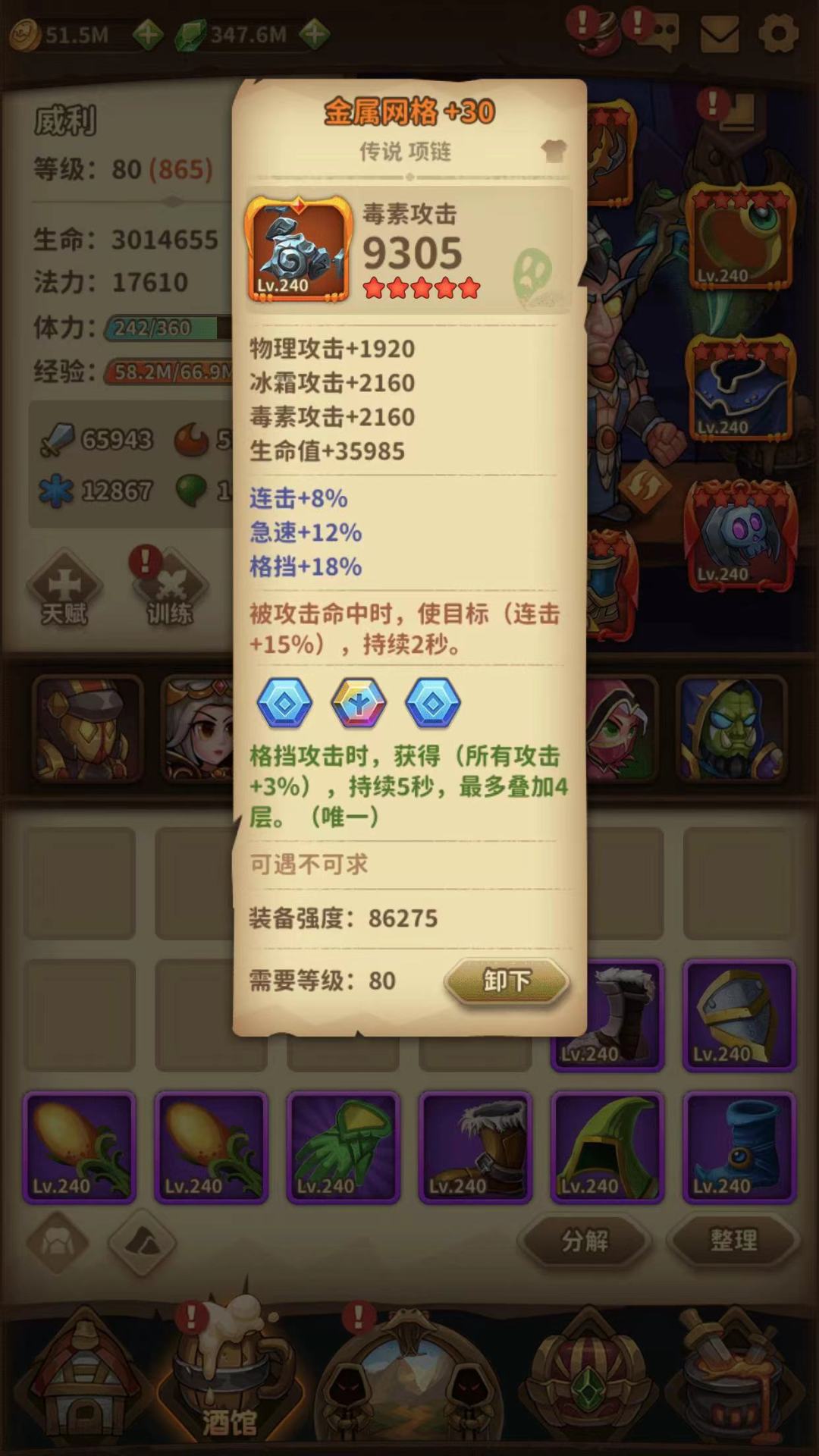 韧性本身有46,补2颗到48,应付绝大部分怪的暴击。