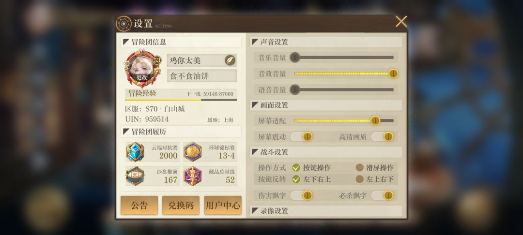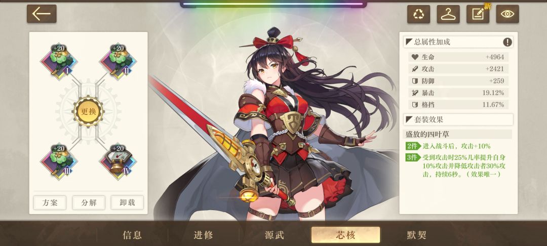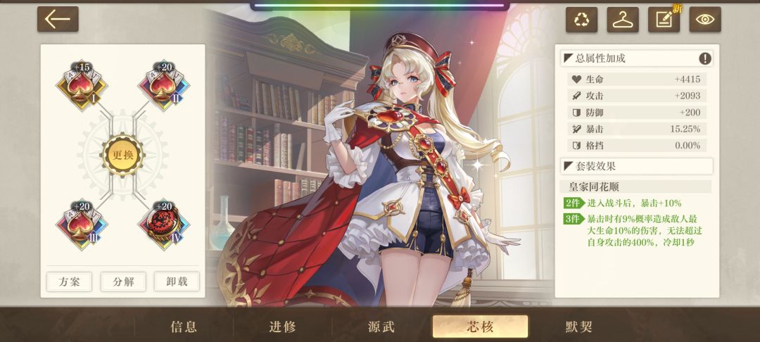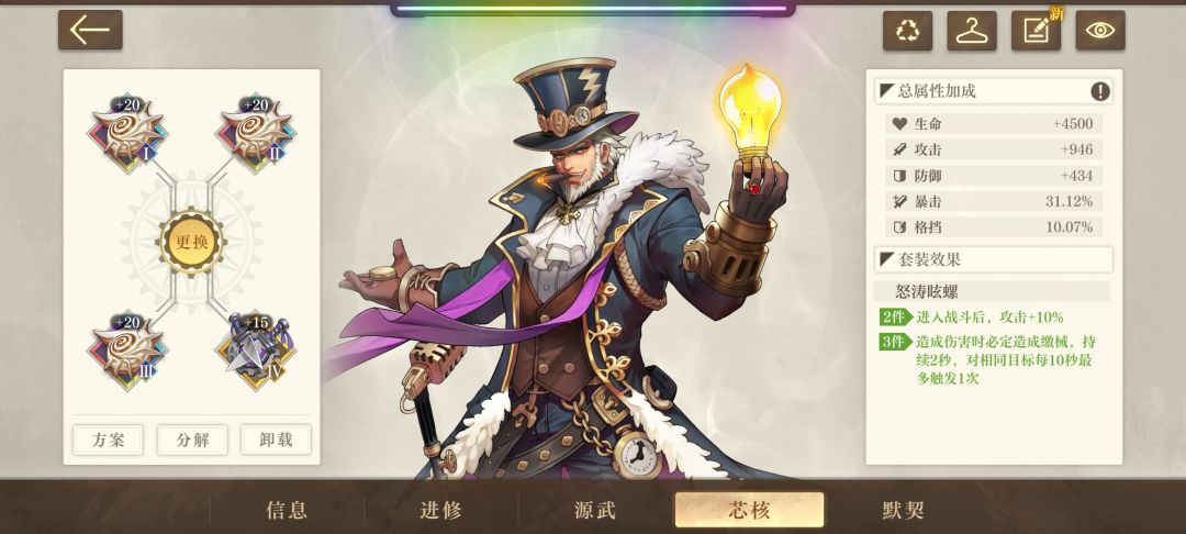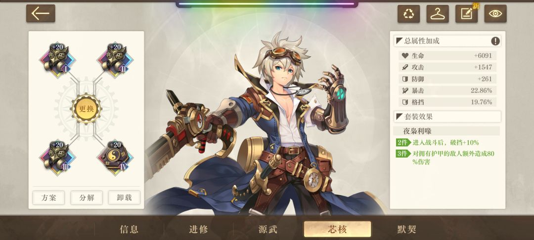 并且对于有以下角色的玩家,可以参考我的芯核搭配,由于1号和2号主词条均为固定的生命和攻击,以下内容里只推荐3号和4号主词条内容,先上目前游戏进展图