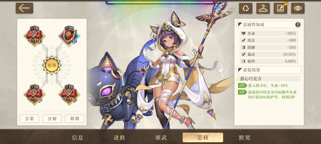 首先是甜心巧克力,沙美的标配芯核,拥有沙美的第一件事就是给沙美弄一套巧克力,自动回血+必杀回血均可叠加护盾,不用多说。