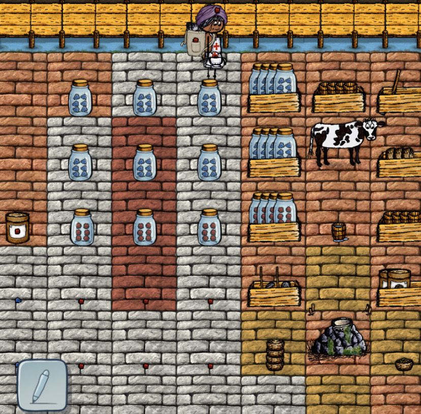 吃豆人,我更喜欢叫水母,水母田,要是有海绵宝宝的图纸就好了。上面扁石是抽油的地方。因为附近没有水池,就在旁边盖了蓄水池。画完之后觉得有点像游戏机手柄。