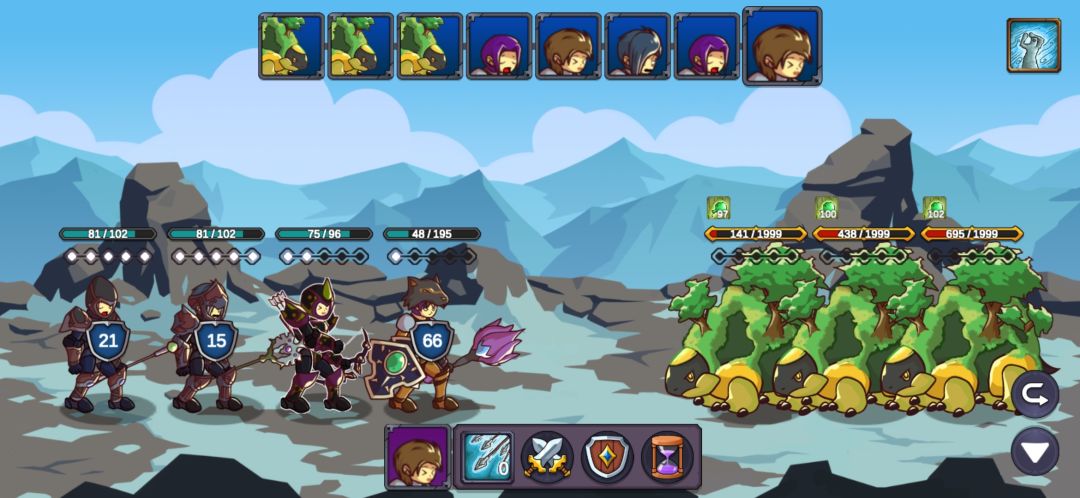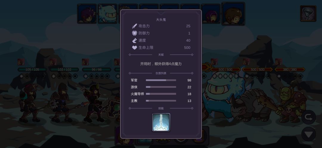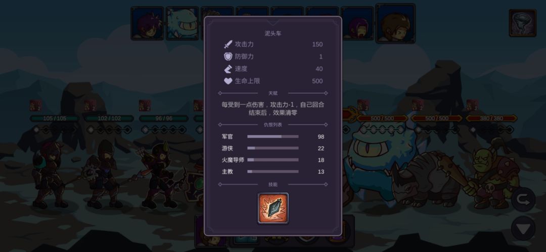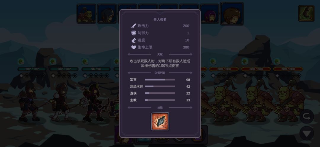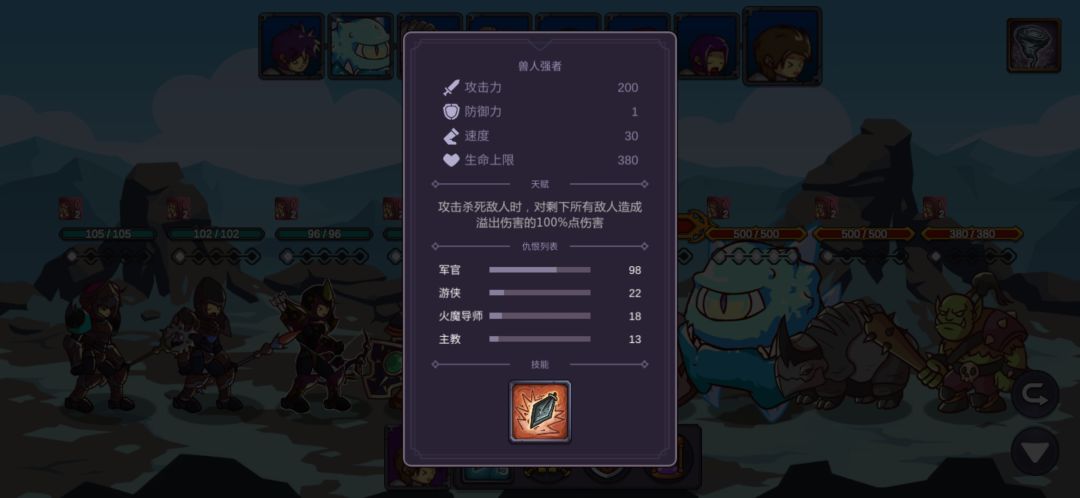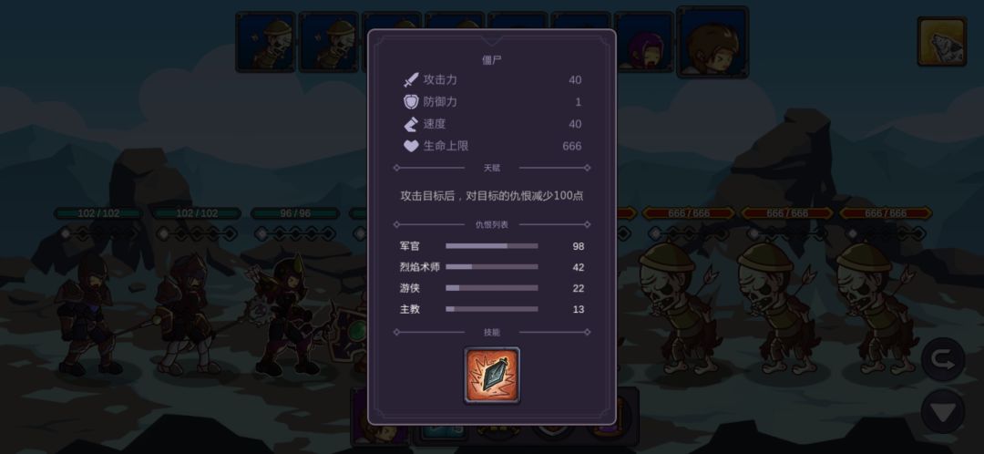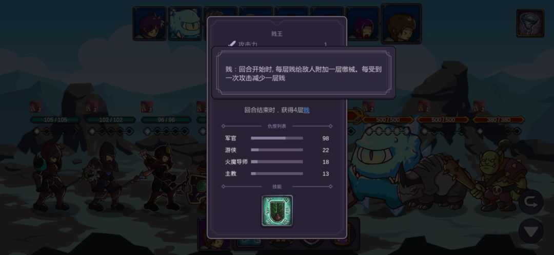 这里我重复了很久,也幸亏有仇恨混乱的debuff,让游侠的连击和毒减掉两只的攻击力,不断退出重进最后成功用军官和主教的复活抗住另外两只的输出,游侠的毒第二轮就能铺满四个怪了,中毒后怪的攻击直接变1