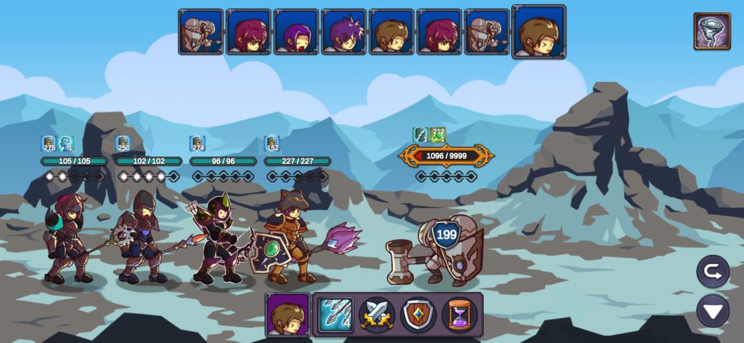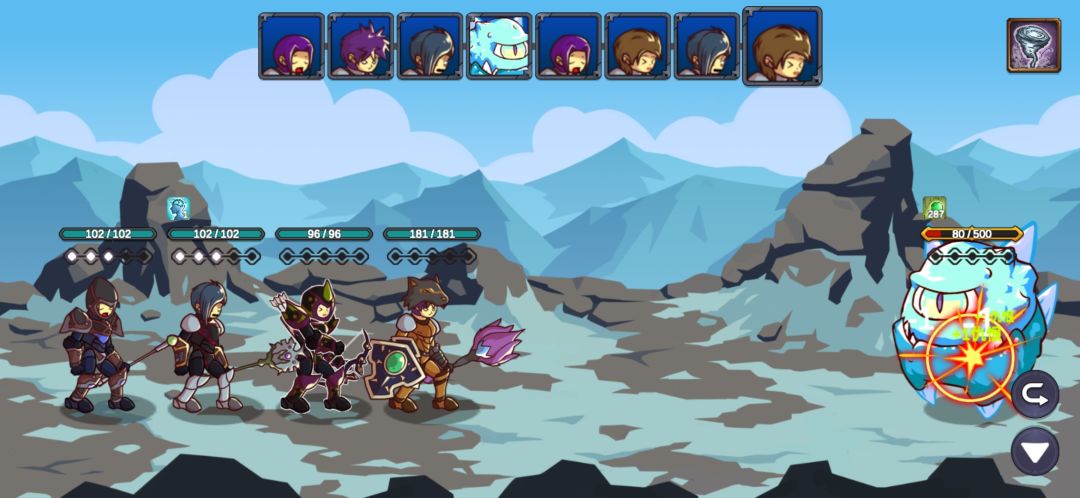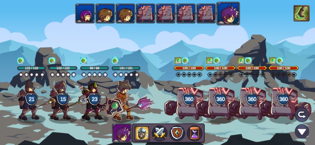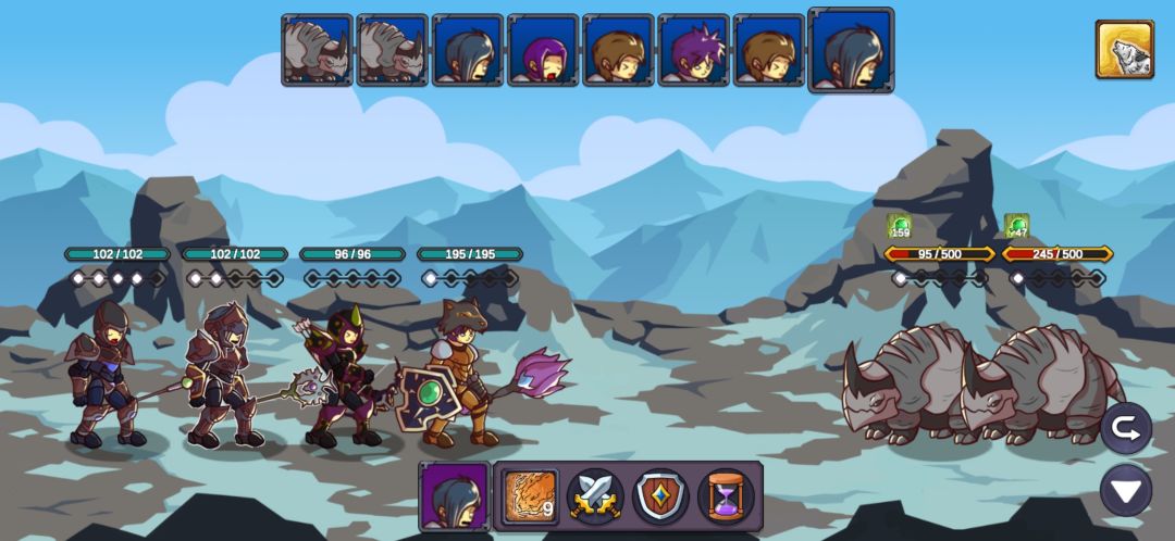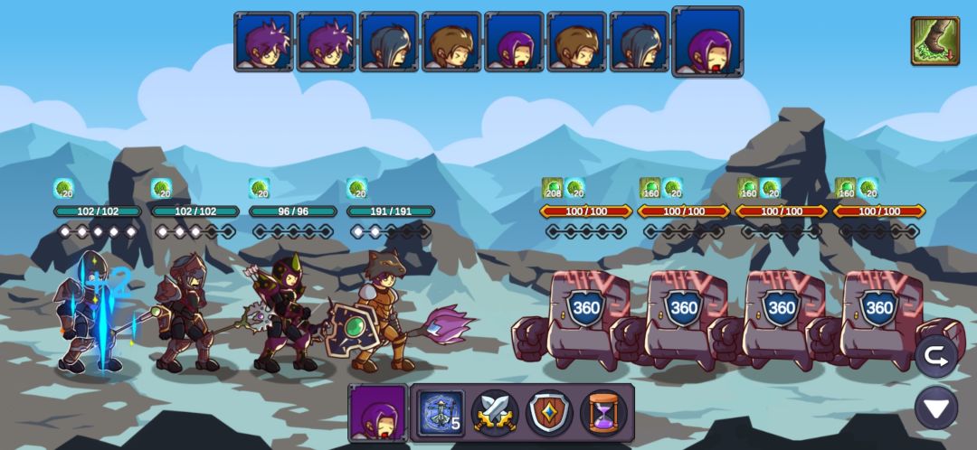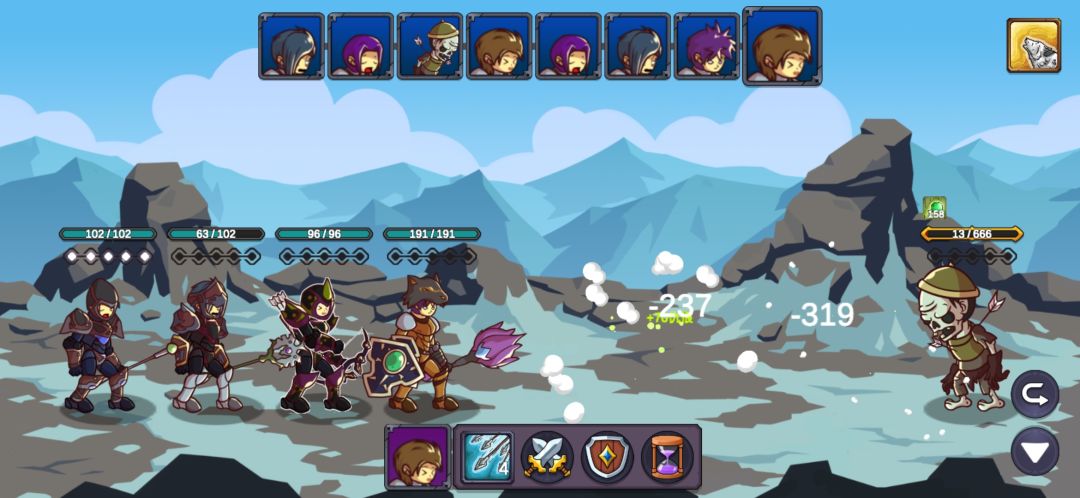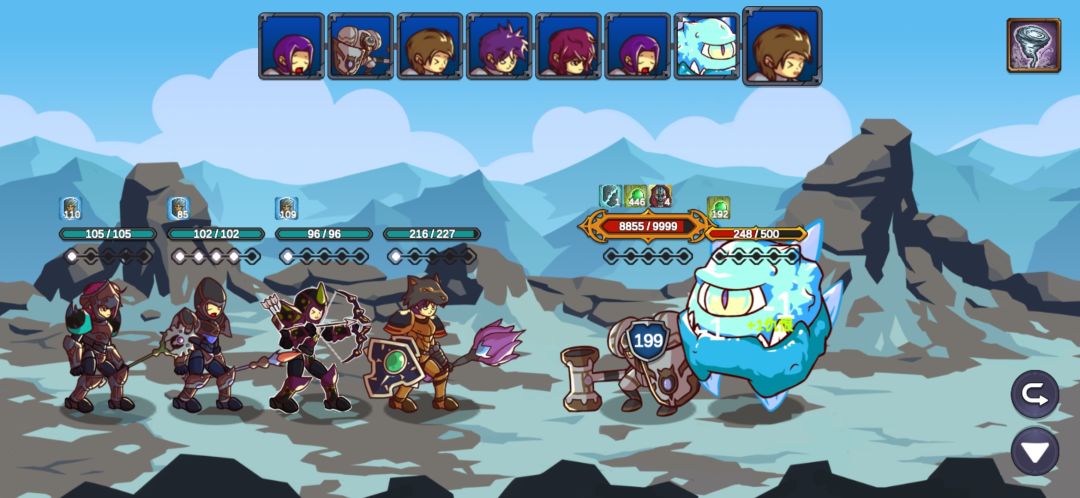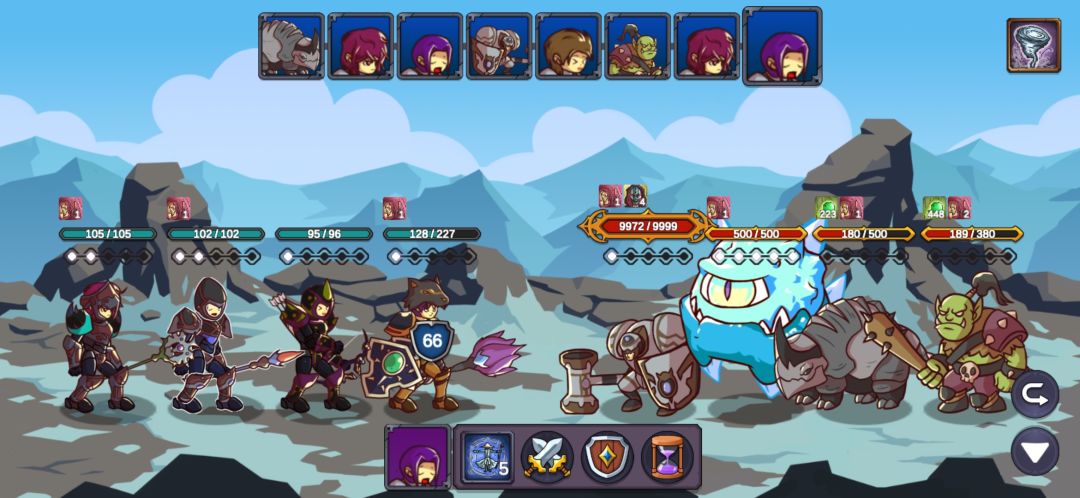 这里我重复了很久,也幸亏有仇恨混乱的debuff,让游侠的连击和毒减掉两只的攻击力,不断退出重进最后成功用军官和主教的复活抗住另外两只的输出,游侠的毒第二轮就能铺满四个怪了,中毒后怪的攻击直接变1