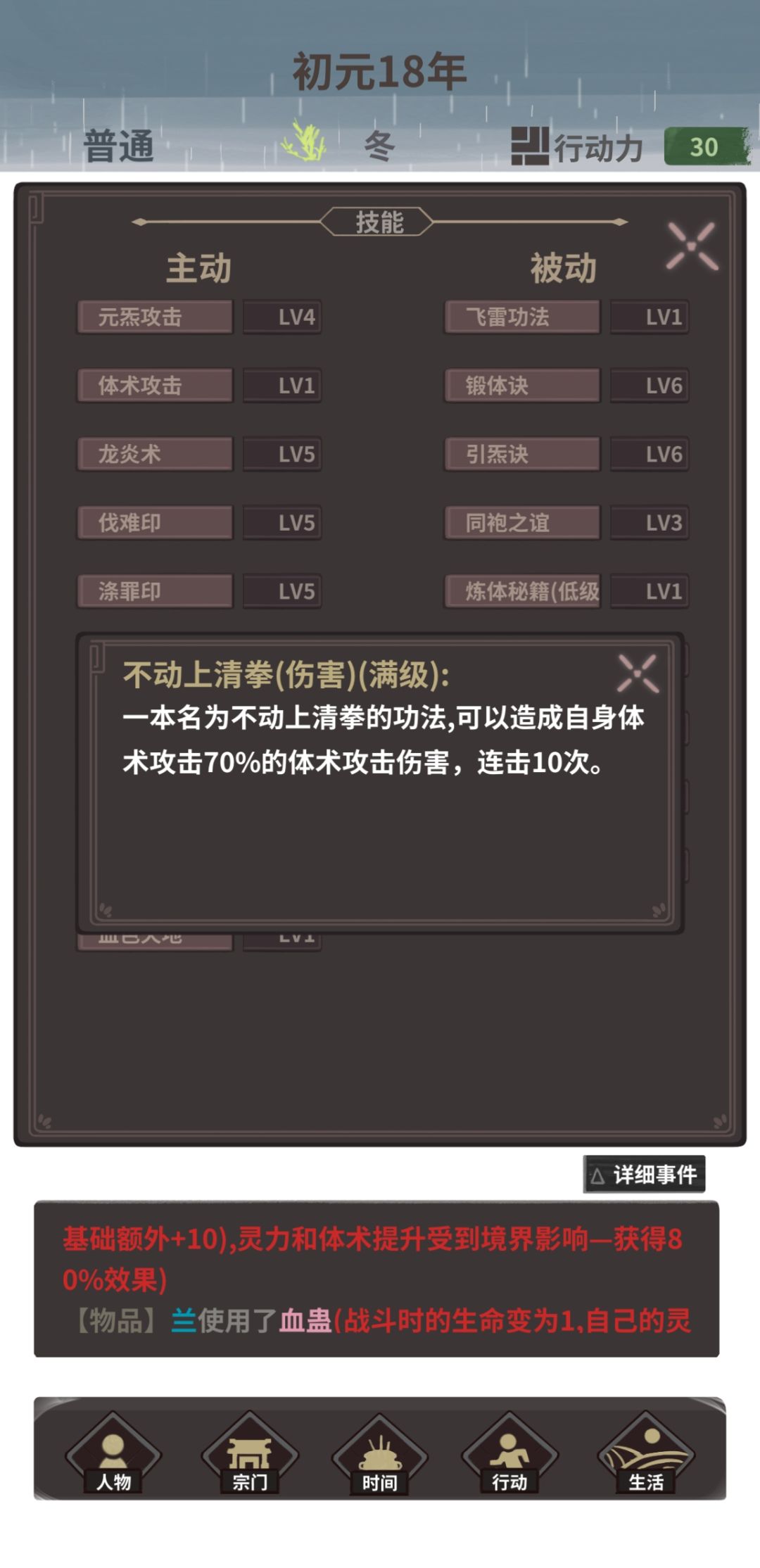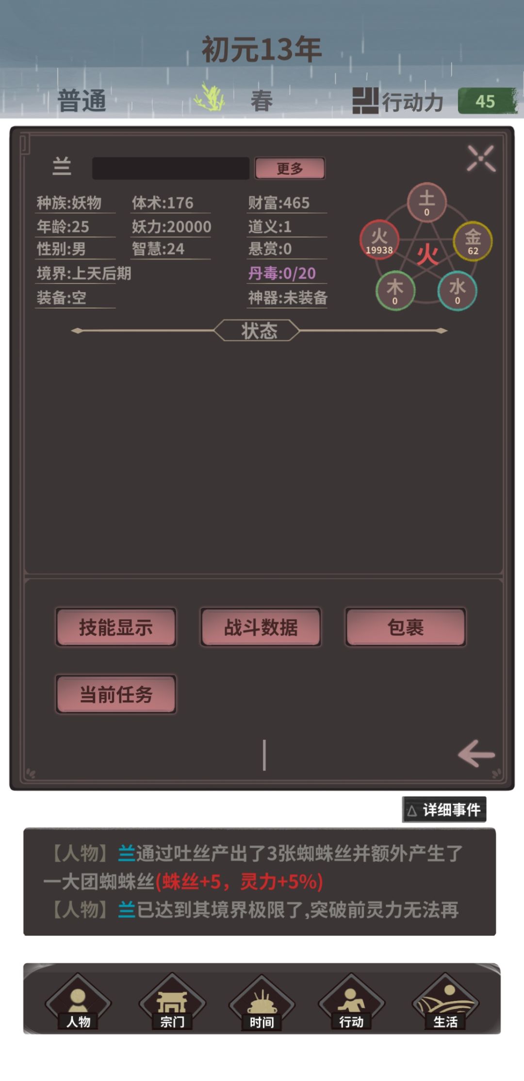 根据我目前的算法,虽然上天可以翻4倍攻击,拳套有10%伤害加成和10%当前生命火伤,但是算下来不如凡界的一拳高,不过我也没到极限,当前版本最高体术可以到5.8w,就是太难了,放弃放弃,偷得浮生半日闲啦!