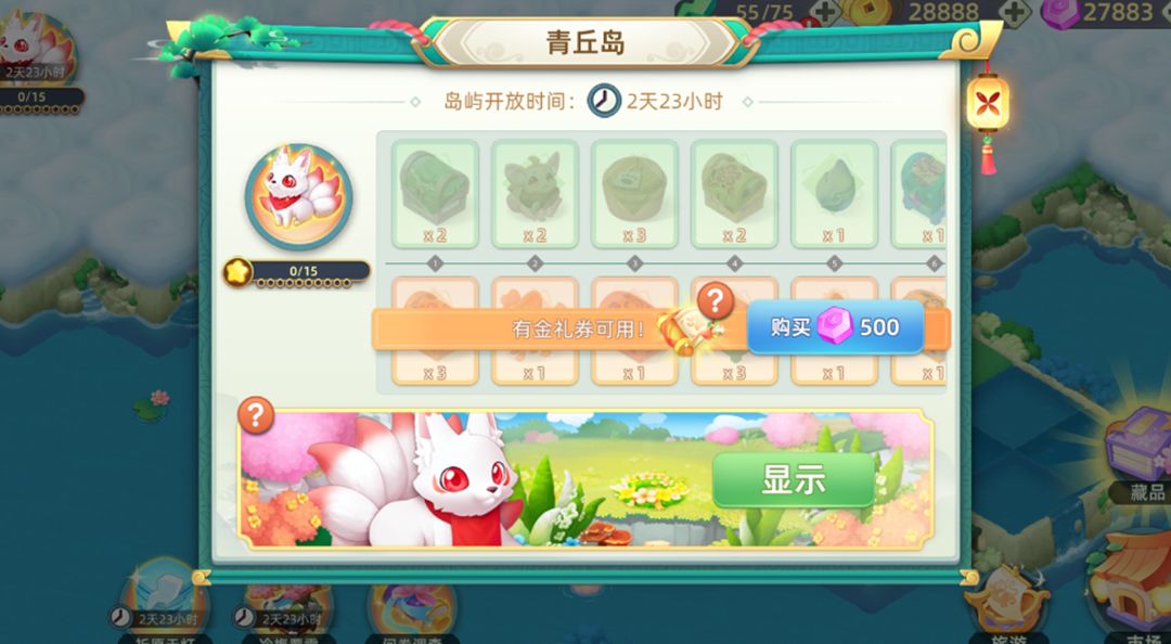 神兽岛屿来袭!活动期间,岛主们可前往青丘岛,在岛上合成九尾狐即可获得星星积分,累积积分解锁活动进度,获得丰厚奖励。