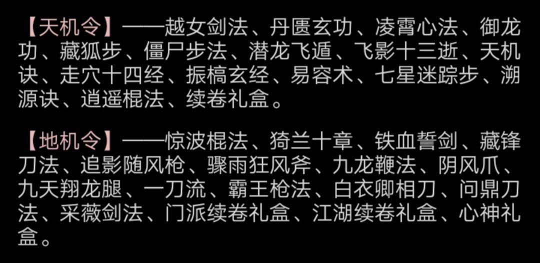 这里不作为建议,仅用于说明天机令和地机令的价值。以上武学如果通过直接氪金来获取,一般需要氪400-500左右。