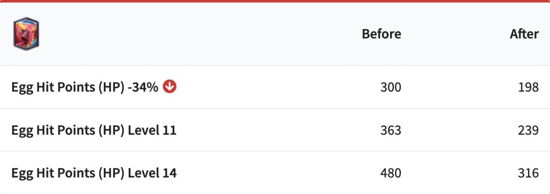 凤凰过于强大的原因完全在于它最后留下的蛋。关键这颗蛋仅能被弓箭摧毁,意味着大多数卡组无法应对。本次削弱后,一根滚木或者一个滚筒就能摧毁凤凰蛋。希望这个改动可以阻挡凤凰血洗竞技场的步伐,考虑到其在终极挑战的使用率一直不下70%,在编写本文时更是达到了恐怖的75%。
