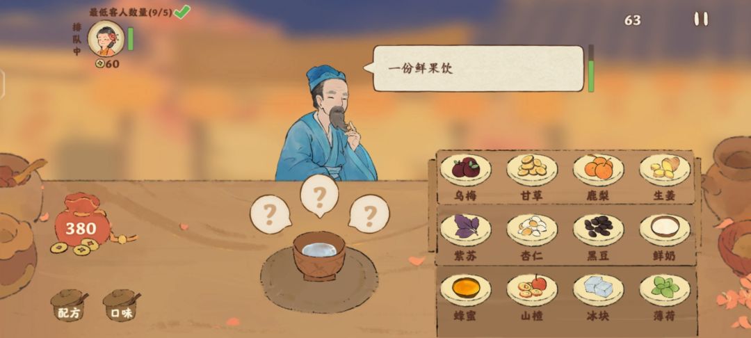 首先,正常的配方和口味左下角有,但是正式开始的时候点开再看就有点费时间了(虽然也没亏多少个铜币但是万一万一有月琅就很亏),所以在这我再写一遍: