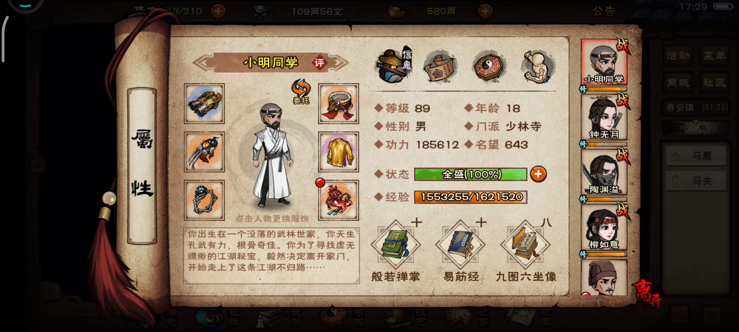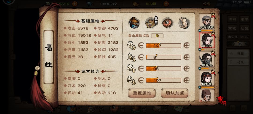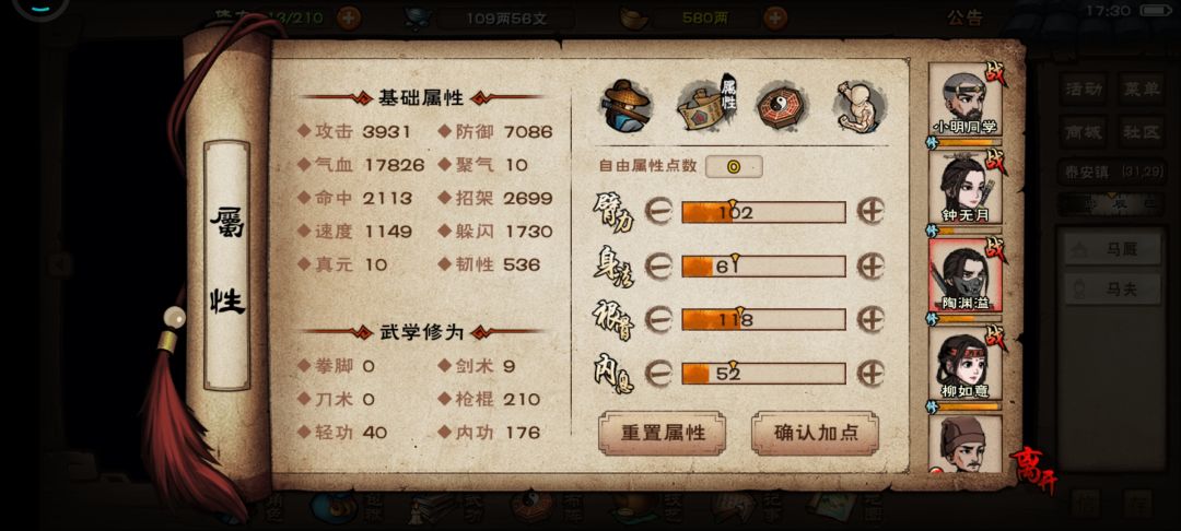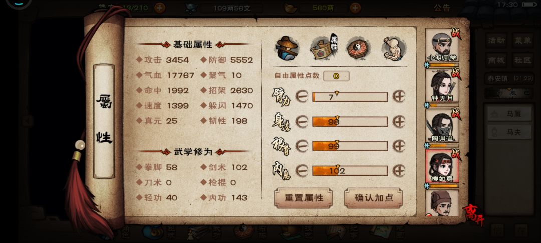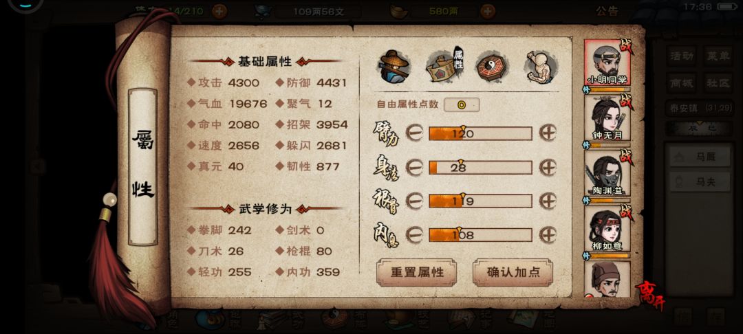 我今天又换了无定拳,想让主角招架反击多一点,好攒被动,快速打出高伤害(今晚可以挂满)