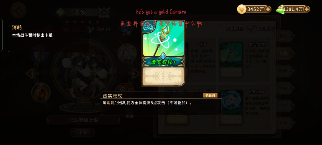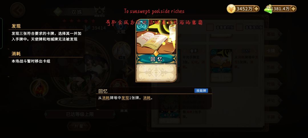 假如没有闪回的双妮玩家也不要随便带一些牌来凑数,可以选择带干涉和汲取,来防止石中剑没的时候妮可没有暴击。也别忘了固有法杖