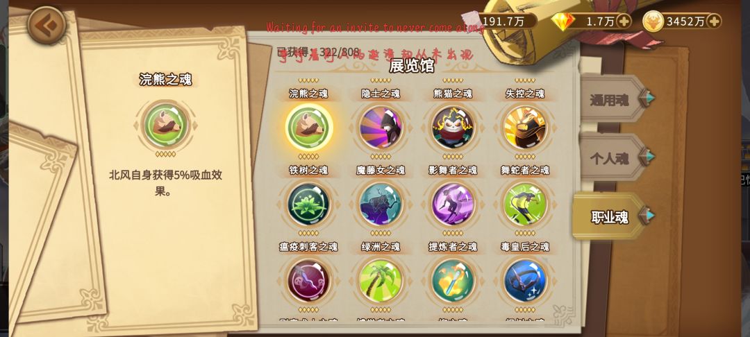 血量太少的小伙伴…也是能卷滴,你这样想,别人血量多5级国王魂,那假如你三级甚至两级拿到国王魂,那你多触发几次北风的个人魂不就和他们差不多甚至更多血了吗?你这是不够卷才会问出这种问题,什么话,什么话这是?不要为你的懒找借口![[嗒啦啦2_再见]]()