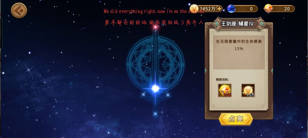其次是点增加血量的星象
