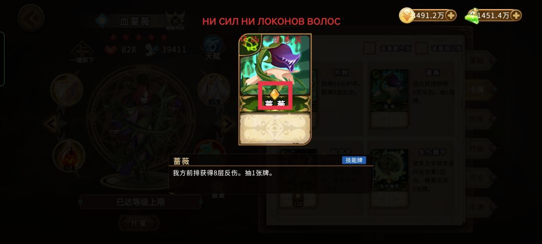 PS:所有阵容是血蔷薇配10张起步无敌甲和1-2张蔷薇,这一点和剩下几个阵容都是一样,也是因为只有蔷薇有无敌,所以前排必须是血蔷薇。血蔷薇卡组中带1-2张蔷薇是方便去遇到祭献卡牌事件中去祭献的,并且蔷薇这张卡是过牌,不会脏卡组。卡牌中间的标记是代表这个卡的品质,祭献橙卡会增加你的血量上限