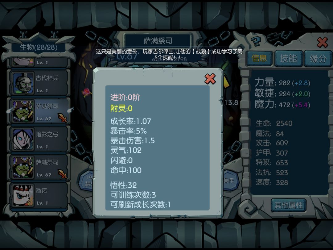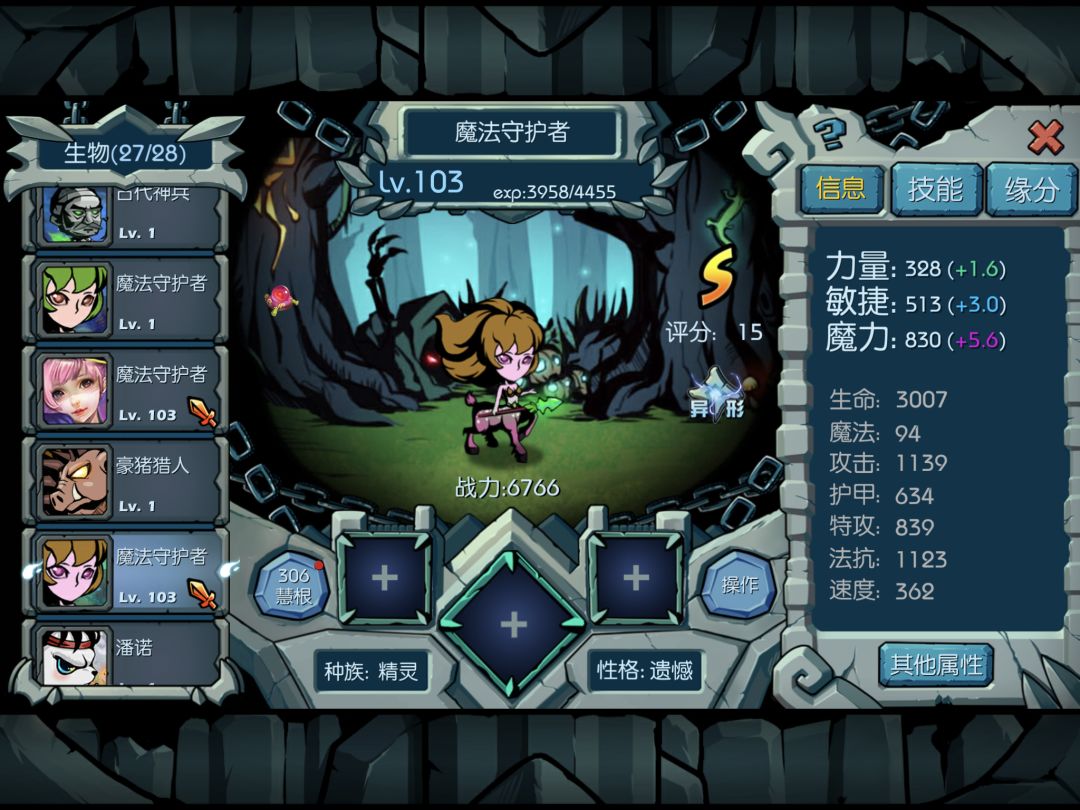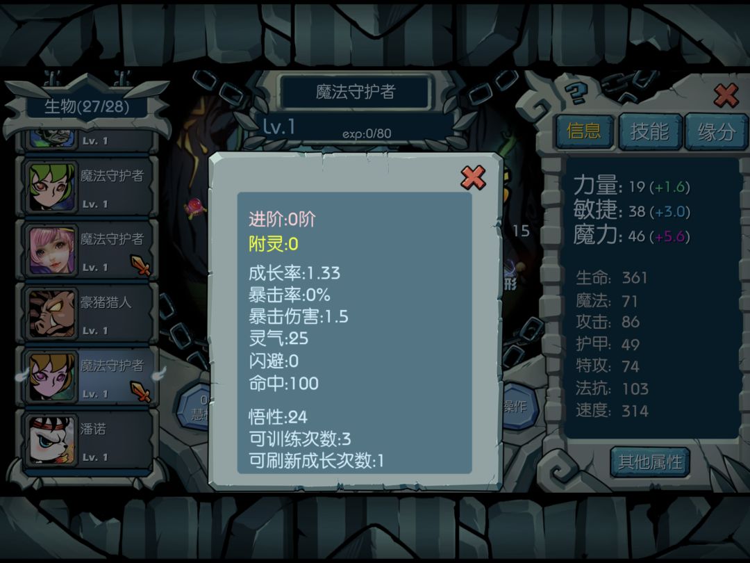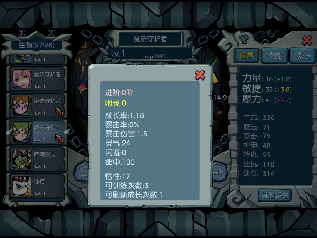 临时从跨服买了只异形魔法守护者。一个成长高魔低,一个魔略高成长适中。