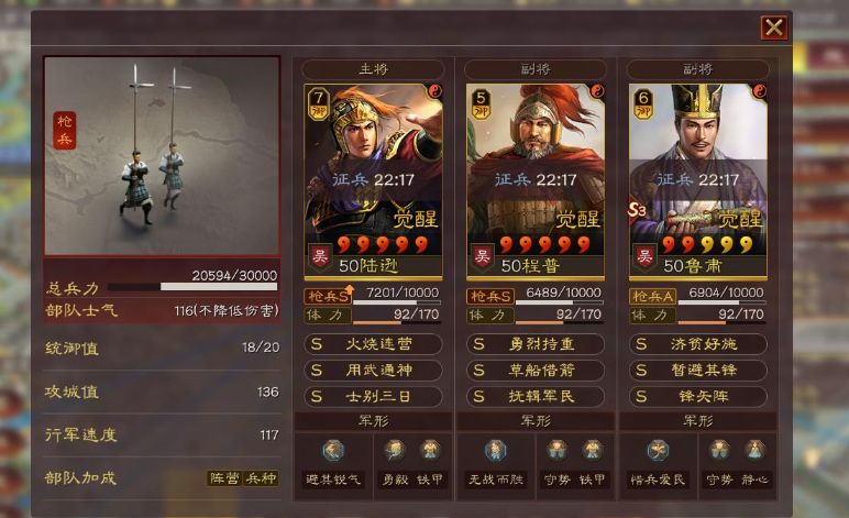 (主将)陆逊(S枪),战法搭配:用武通神+士别三日
