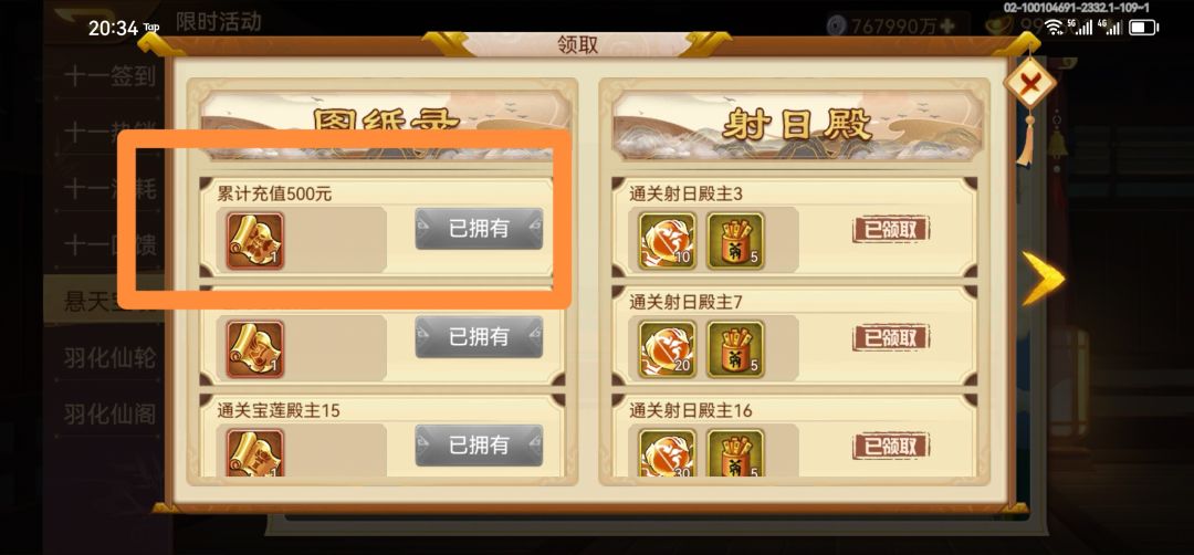 逐日靴、射日弓、宝莲灯、乾坤袋:打限时活动悬天宝境获得