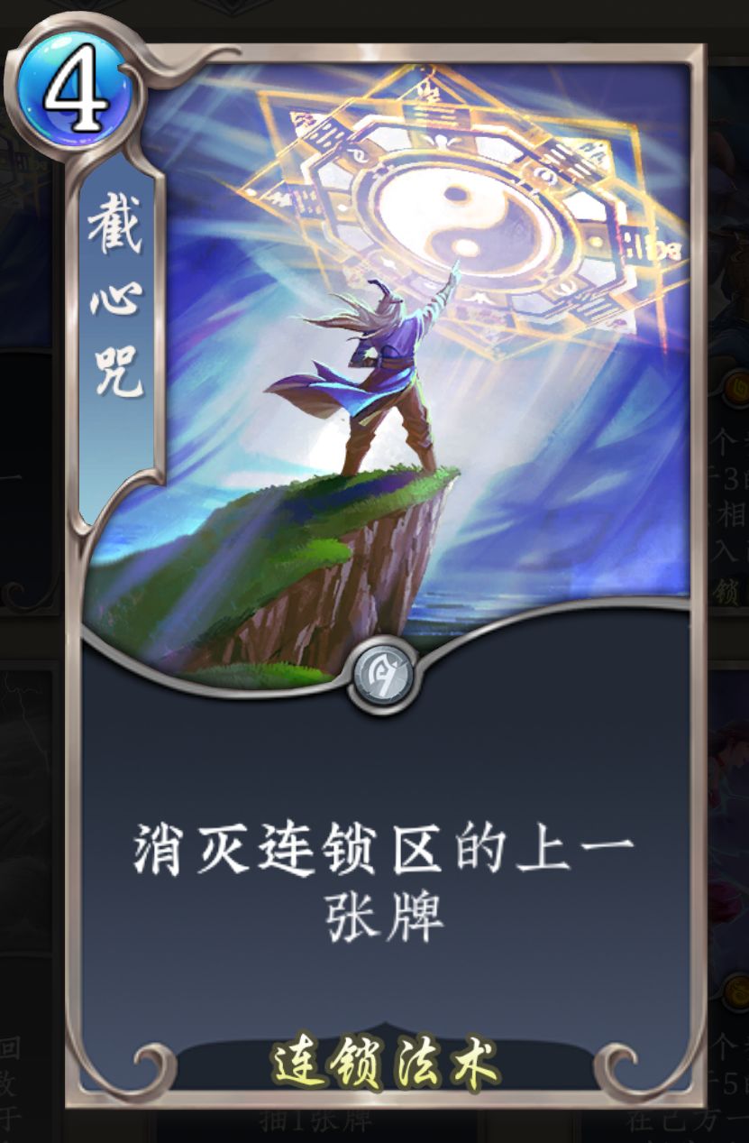 3. 反制类,能对连锁区的牌进行反制,从而使对手意图被打断。代表就是【截心咒】、【闭月】、【笑红尘】、【佛问伽蓝】等。