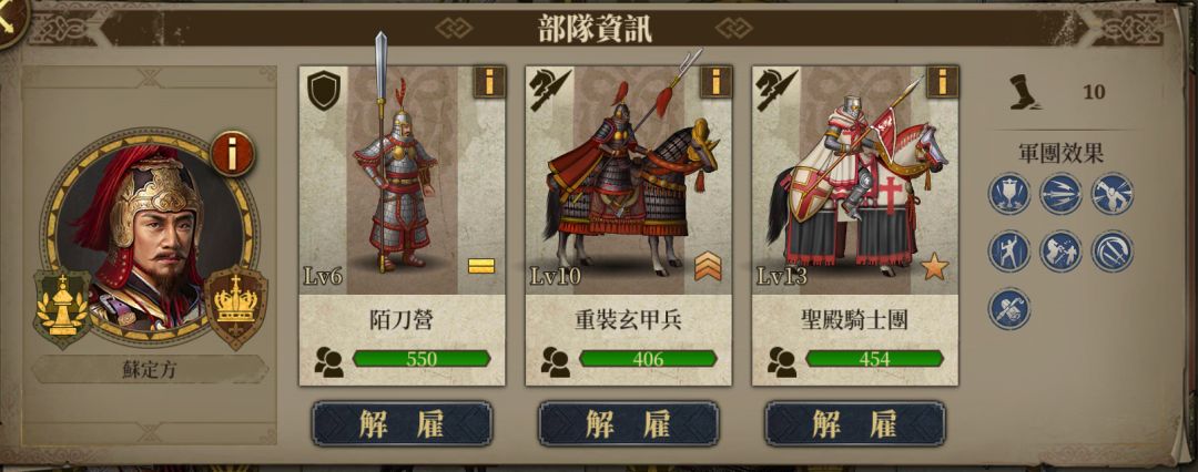 另外补充一点,我以前是用近步的,也就是陌刀+瓦兰吉+瓦兰吉/横刀。但是我现在其实不太建议。一来是因为近步面板和冲锋都低,玩近步不如玩冲骑。二来玩冲骑可以走3打2,近步只能走2打1。三来就是苏其实不缺减伤,毕竟减伤常驻嘛。