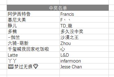 公布一下本期活动中奖名单: